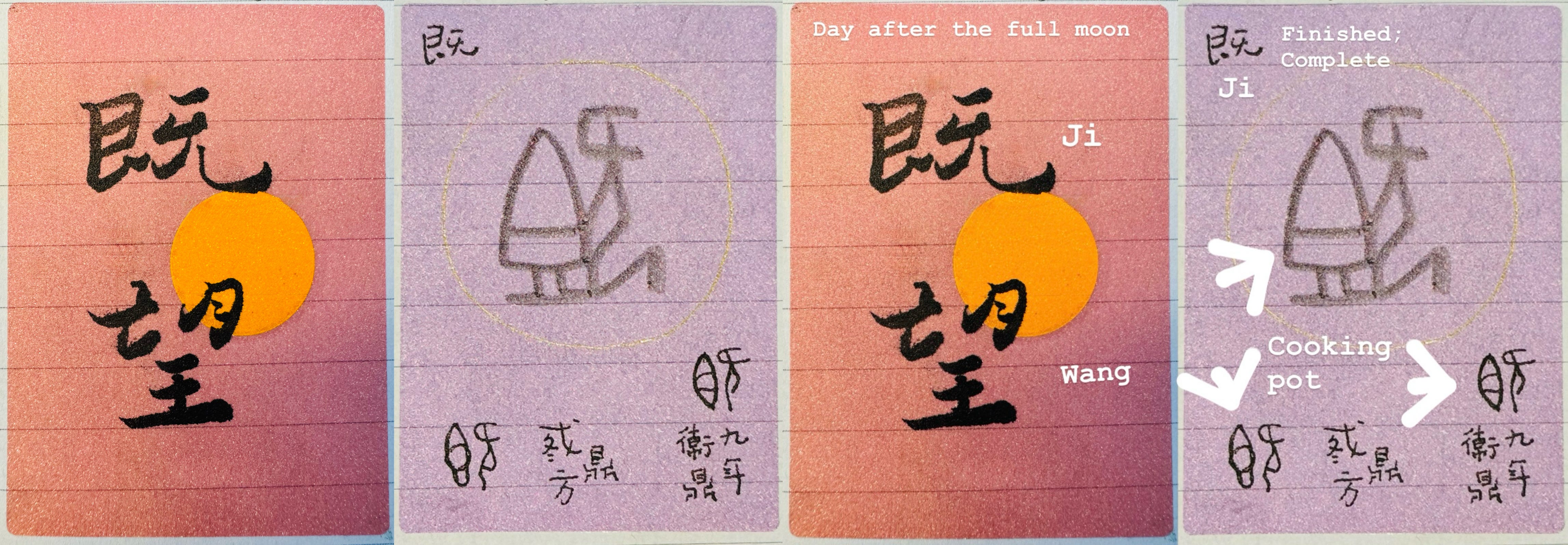 Is the urge to name everything we see a human condition? Anyway the ancient Chinese were not satisfied with naming the day of the full moon but also the day after. So here we have 既望1[ji: wa:ŋ], literally “the look completed”.